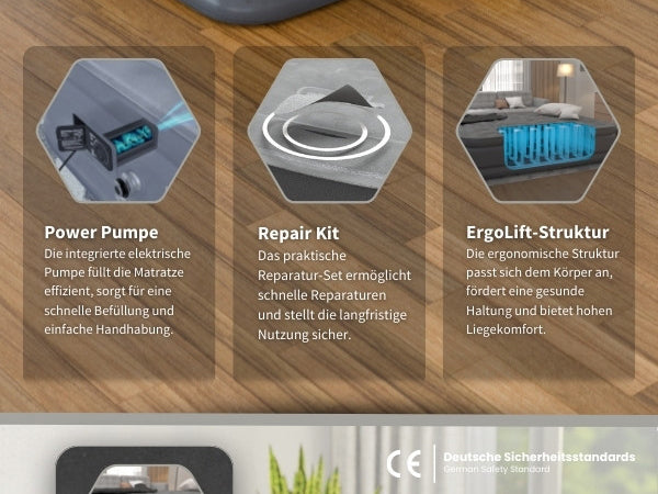 - Integrierte Pumpe: 453 L/min Luftdurchfluss – in nur 3 Minuten einsatzbereit.