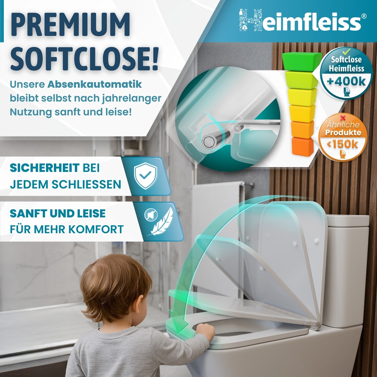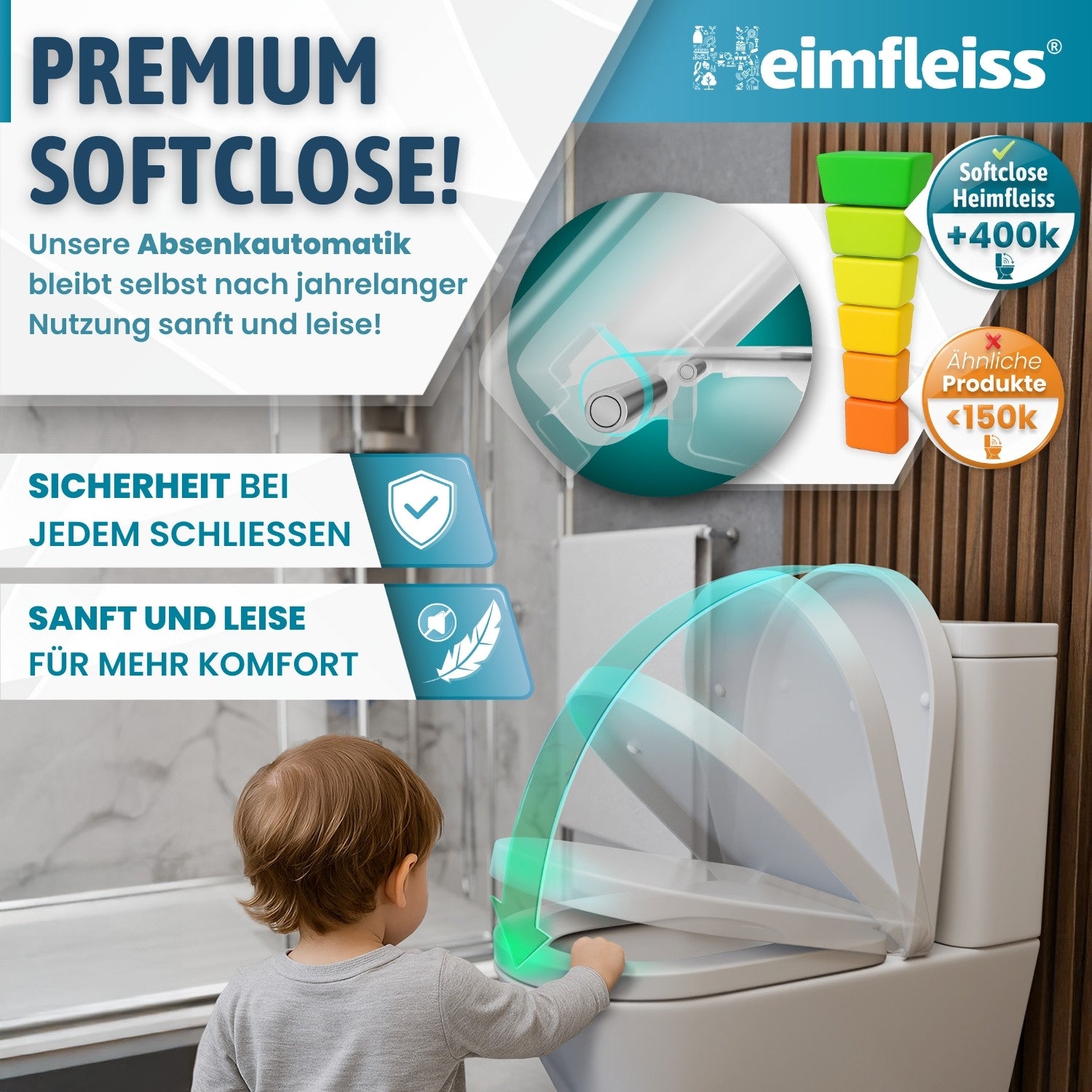 - Sanft & Sicher für Kinder: Die doppelte Soft-Close-Automatik verhindert Einklemmen und lautes Zuschlagen. Ideal für Familien mit Kindern.
