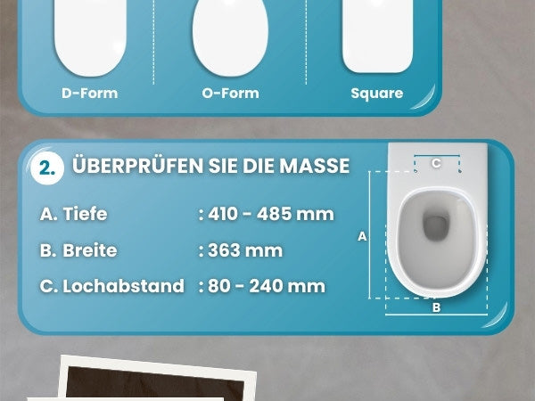 Der Sitz ist passend für alle gängigen Standard-Toiletten – wähle einfach die richtige Form und er sitzt perfekt.